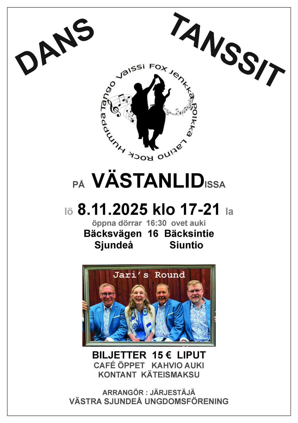 Tanssit Västanlidissä ovat lämminhenkinen tapa viettää iltaa yhdessä ystävien ja kyläläisten kanssa. Tarjolla on myös kahvio herkkuineen.